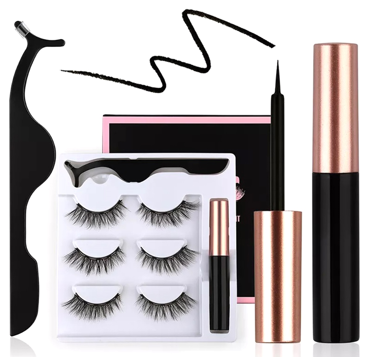 Set 3 perechi de gene magnetice, UBX, penseta si eyeliner, plastic, rezistente la apa, negre
