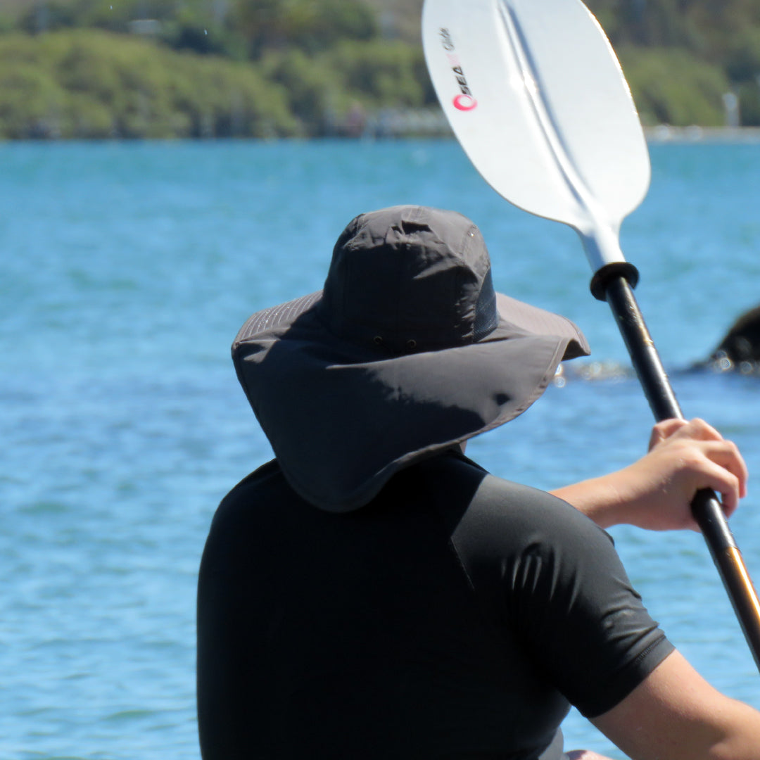 Fabricata din materiale usoare si respirabile , palaria ajuta la mentinerea unei temperaturi confortabile in timpul activitatilor in aer liber. Clapeta de la ceafa este un detaliu esential care protejeaza zona sensibila a gatului de arsurile solare , facand-o ideala pentru utilizare indelungata .