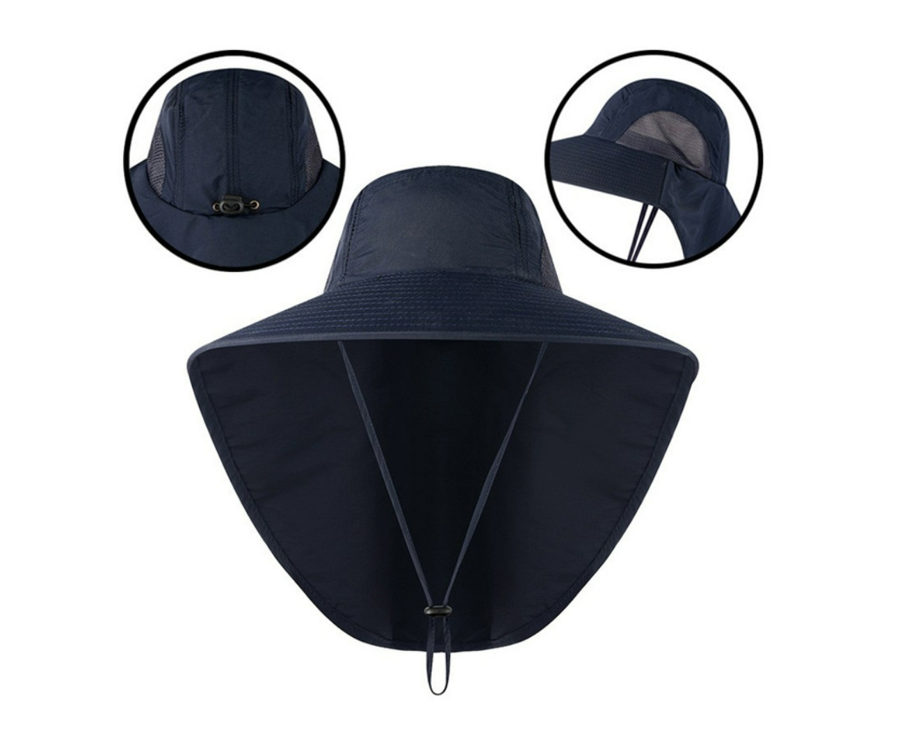 Palarie de soare cu clapeta pe gat, Zola, circumferinta capului 55-60 cm, ideala pentru pescari, plaja, drumetii, albastru inchis
