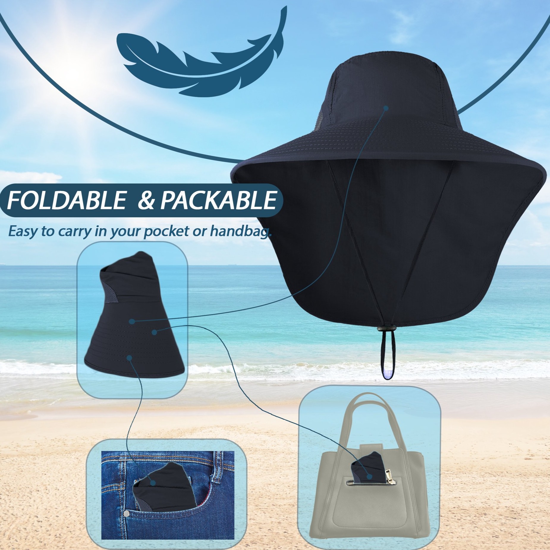 Pune palaria pe cap si ajusteaz-o astfel incat sa se aseze confortabil, asigurandu-te ca clapeta de la spate acopera complet zona gatului. Este recomandata purtarea in timpul expunerii prelungite la soare, indiferent daca esti la pescuit pe malul lacului, intr-o drumetie prin padure sau relaxandu-te la plaja. Dupa utilizare, o poti plia si depozita cu usurinta in bagajul tau.