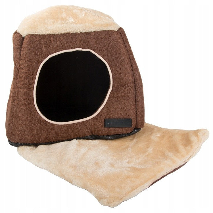 Casuta pentru caini si pisici de talie mica, Zola, baza antiderapanta, 28 x 36 x 33 cm, maro/crem