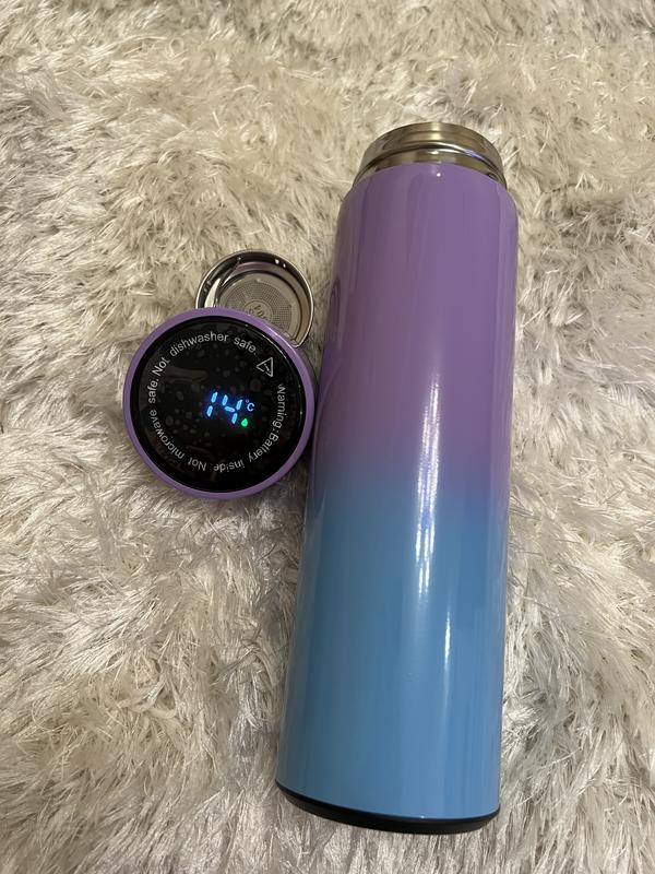 Termos smart, Zola, indicator de temperatura, afisaj LCD, 500 ml, otel inoxidabil, mov/albastru