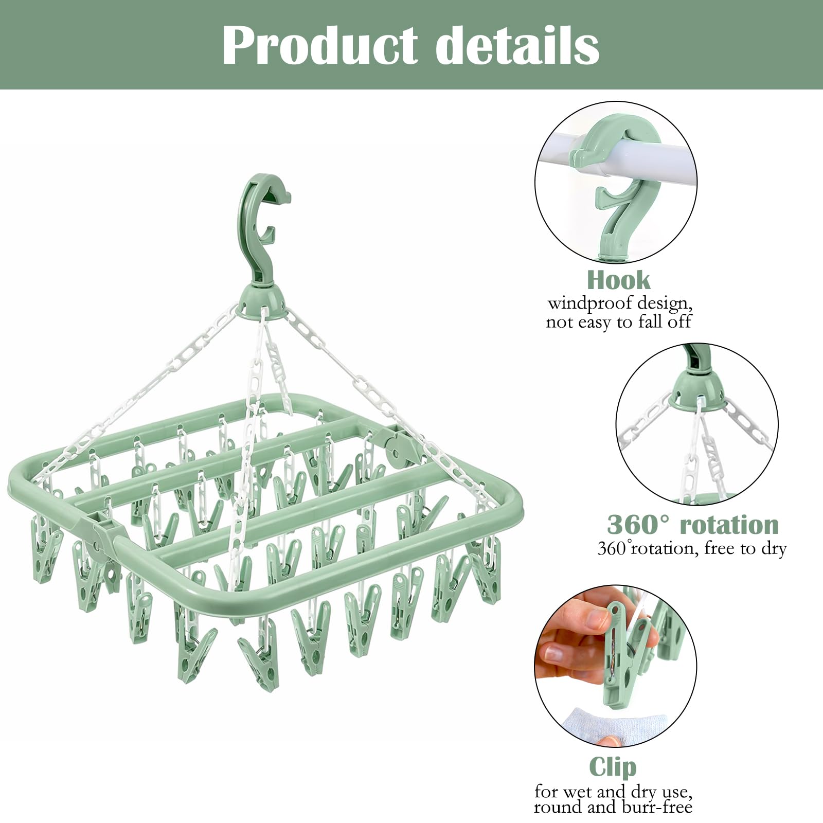 Uscator pentru lenjerie si sosete, Zola®, cu 32 clesti, plastic, 32.5x32.5 cm, verde