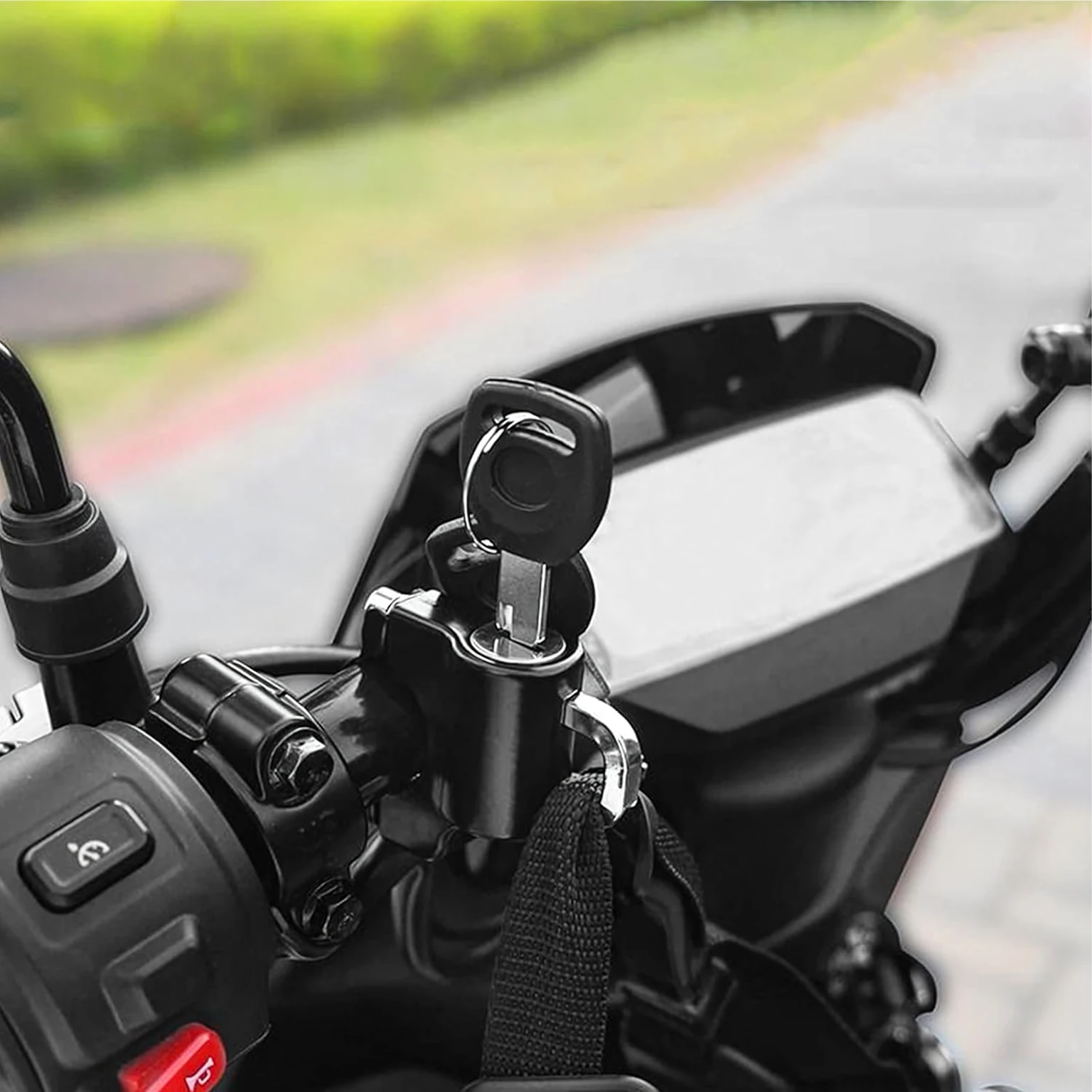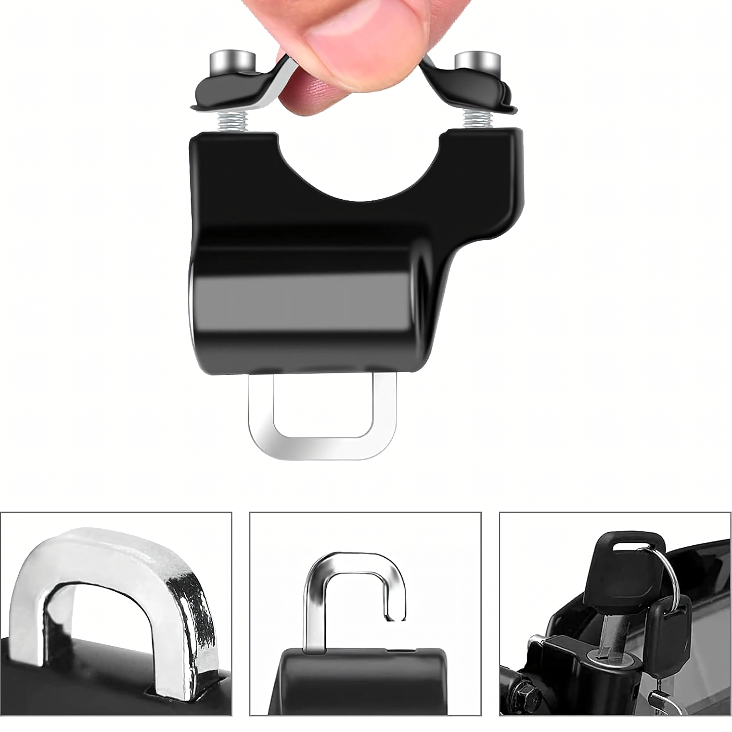 Acest dispozitiv compact si usor isi gaseste locul pe ghidon fara sa incomodeze, iar carligul multifunctional iti permite sa fixezi nu doar casca, ci si o geanta, un rucsac sau o jacheta, oferindu-ti mai mult decat o simpla incuietoare: un mic sistem de organizare pentru obiectele tale atunci cand esti pe drum.