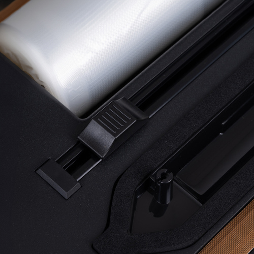 • Cutit glisant incorporat + depozitare rola – creati pungi la orice dimensiune, fara foarfece si fara riscul de a taia stramb.