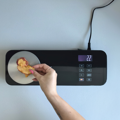Acest aparat de vidat este proiectat pentru a oferi doua functii esentiale intr-un singur dispozitiv compact: vidare puternica pentru pastrarea alimentelor si cantar digital ultra precis pentru masurarea exacta a portiilor. Cu o precizie de 0.1 g si o capacitate de pana la 2 kg, cantarul integrat va ajuta sa portionati corect ingredientele pentru retete, sa pregatiti meniuri pentru dieta sau sa depozitati mancarea in mod eficient, evitand risipa. Vidarea puternica elimina aerul in doar cateva secunde, pastrand mancarea proaspata de pana la 5 ori mai mult, iar ecranul LCD modern face totul usor si intuitiv.