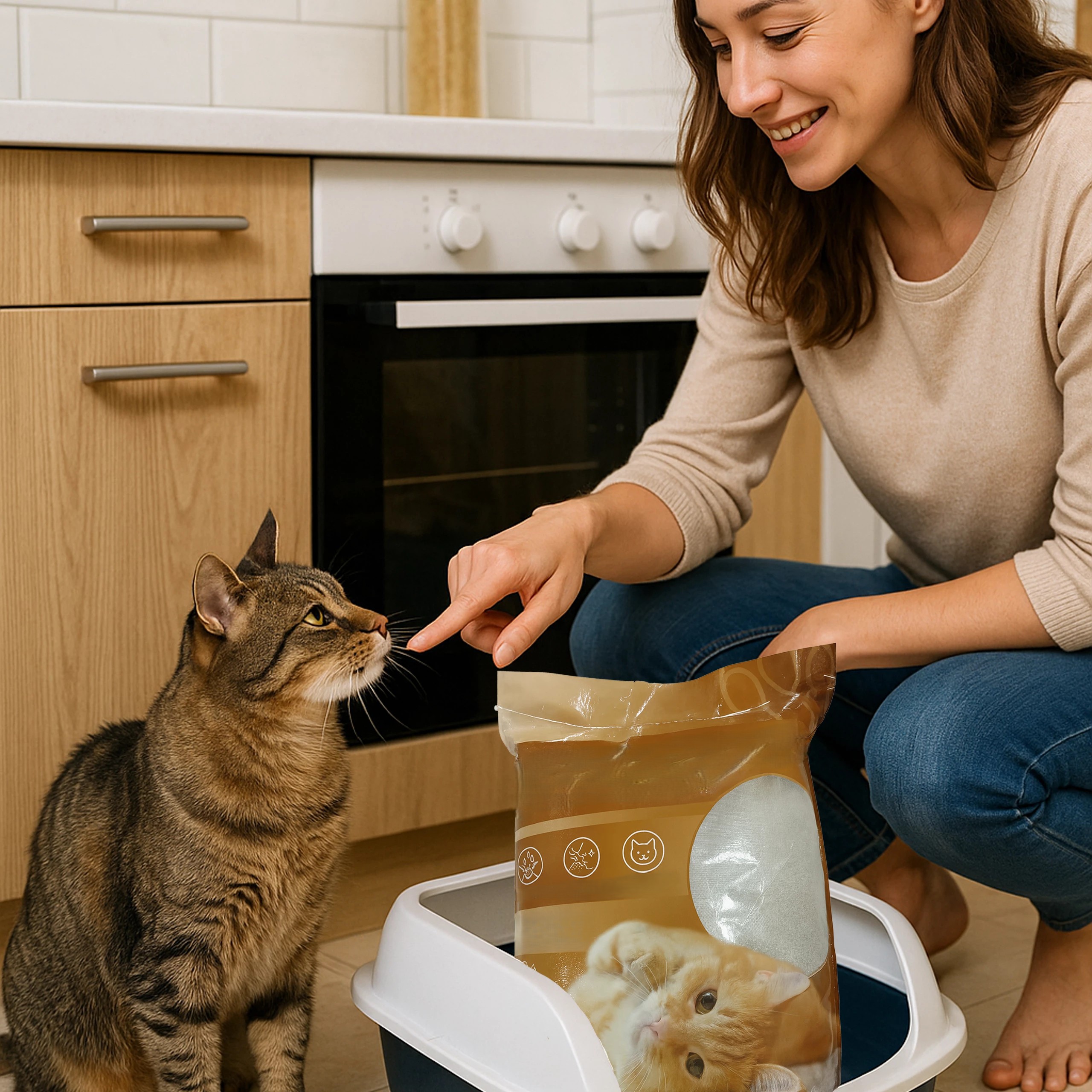 • Recomandat pentru pisici sensibile la praf sau mirosuri artificiale.