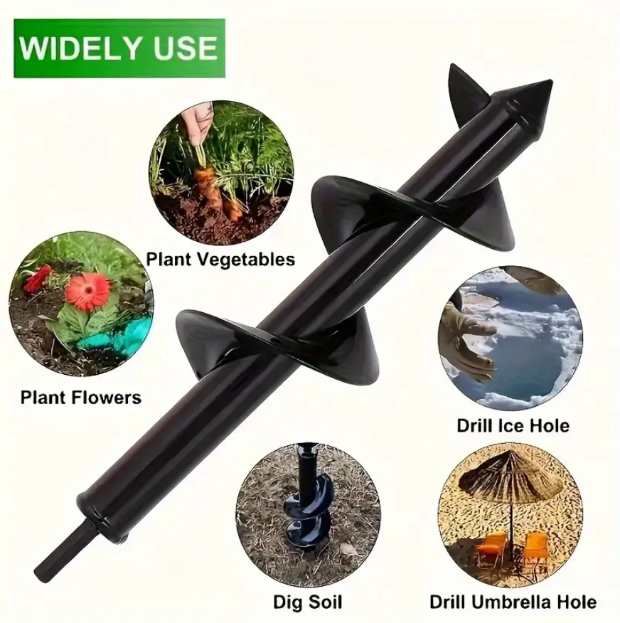 Burghiul spiralat pentru gradina este un instrument profesional, practic si durabil, creat pentru a transforma orice activitate de gradinarit intr-o experienta rapida, precisa si lipsita de efort. Acest accesoriu ingenios este ideal pentru plantarea florilor, bulbilor, arbustilor, aerarea solului, amestecarea ingrasamintelor sau chiar pentru fixarea tarusilor si a stalpilor decorativi. Datorita designului sau robust si constructiei din otel de inalta calitate, burghiul rezista cu succes la utilizare intensiva si la contactul repetat cu pamantul, pietrisul sau radacinile tari.