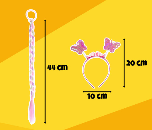 6 piese: bentita cu antene, aripi, fusta curcubeu, set bijuterii, extensie de par, bagheta magica