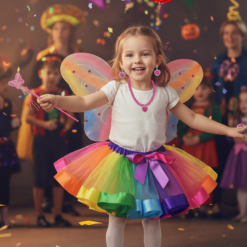 Costumul de fluturas cu 6 piese pentru copii este alegerea perfecta pentru micutele care viseaza sa straluceasca la orice petrecere. Colorat, usor si confortabil, acest costum transforma fiecare fetita intr-un fluture magic care aduce zambete si energie oriunde apare. Ideal pentru carnavaluri, petreceri tematice, Halloween, zile de nastere sau serbari scolare, acest set multicolor este practic si versatil – un singur costum pentru multe ocazii speciale.