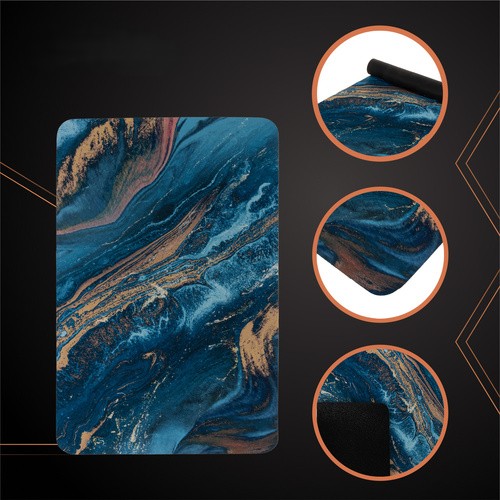 Fiind subtire si usor, cu o grosime de doar 2,5 mm si o greutate redusa de 0,304 kg, covorasul se aseaza perfect pe orice suprafata fara sa se deformeze in timp. Dimensiunea universala de 60 x 40 cm il face potrivit atat pentru bai mai mici, cat si pentru incaperi mai spatioase, iar modelul abstract in nuante turcoaz si auriu adauga un accent elegant si modern.