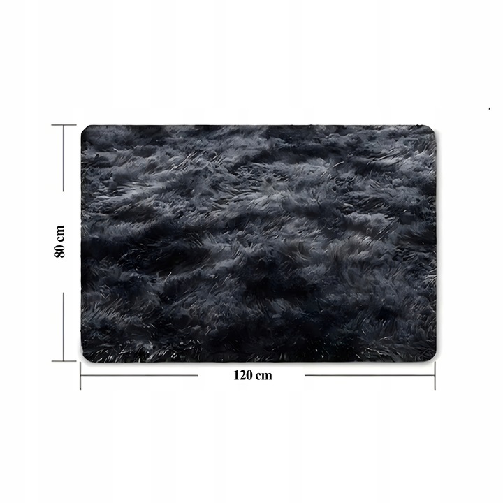 Covor pufos dreptunghiular, Zola, moale si confortabil, antiderapant, poliester, 120 x 80 cm, gri inchis