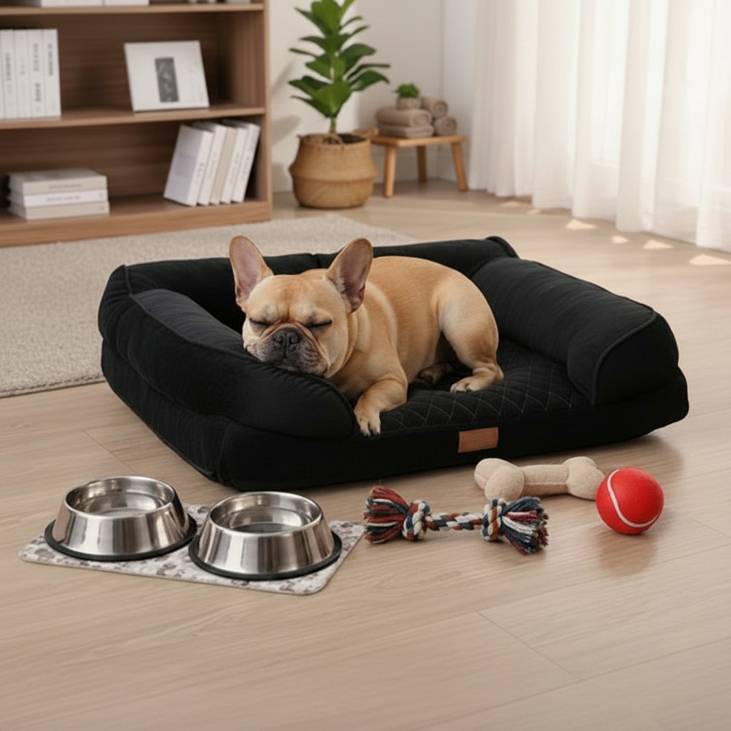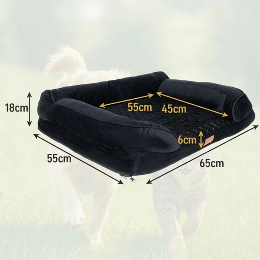 Culcus pentru animale, Zola, 65 × 55 × 18 cm, umplutura spuma 6 cm, husa fermoar, detasabila, negru