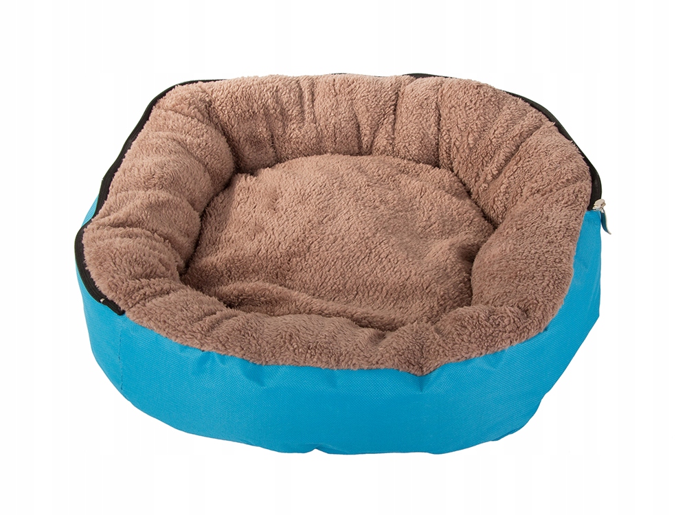 Culcus pentru caini si pisici, Zola, copertina detasabila, 54 x 13 cm, material moale, rotund, albastru/maro