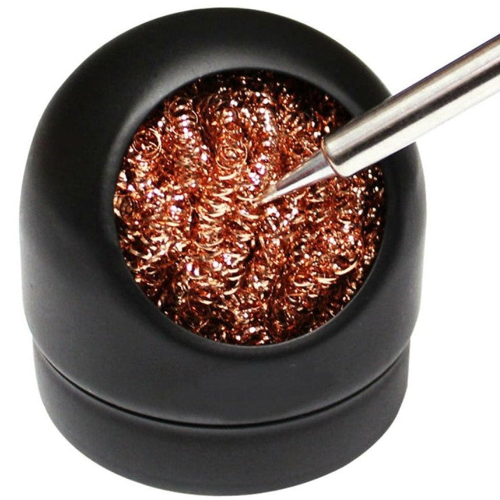 Acest produs este un curatator de varfuri de lipit. O baza metalica solida cu o gaura mare a fost umpluta cu aschii de metal, ceea ce este perfect pentru lipirea intensiva care necesita curatarea frecventa a varfului. Aparatul de curatare nu necesita intretinere (nu necesita curatare umeda) si nu scade temperatura varfului.