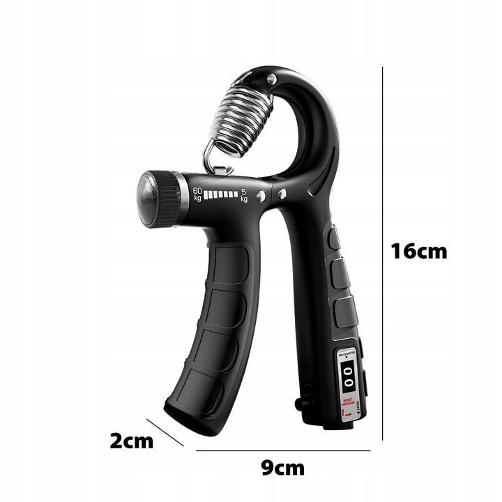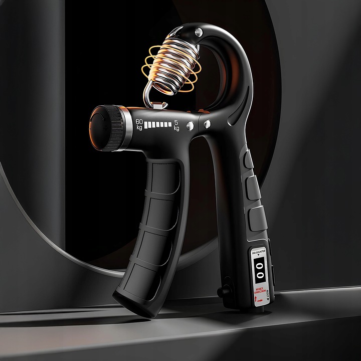 Flexor pentru antebrat, Zola, 5-60 kg, reglabil, functie de numarare, maner ergonomic, din otel, 16 x 9 x 2 cm, negru
