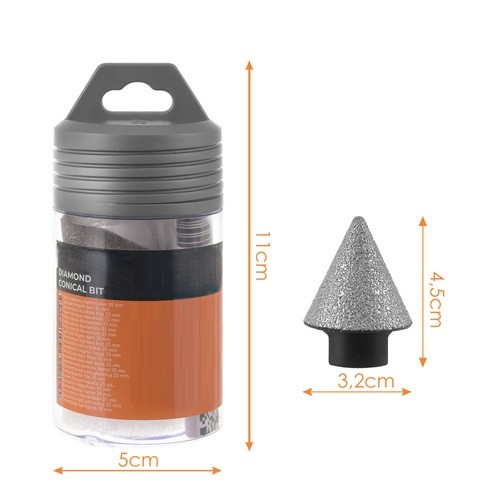 Freza conica diamantata, Zola, dimeniune 2-35 mm , filet M14, pentru gaurirea umeda/uscata a materialelor dure, otel mangan, 4.5 x 3.2 cm , argintie