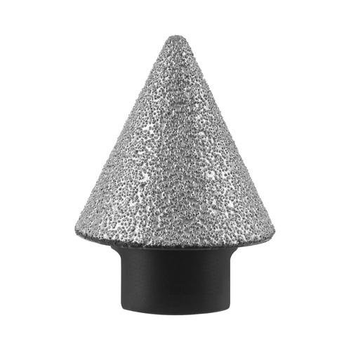 Diamante brazate in vid pe intreaga suprafata a conului - Strat uniform de diamant care asigura taiere constanta, viteza crescuta si uzura redusa, fara ciobiri sau crapaturi ale materialului.