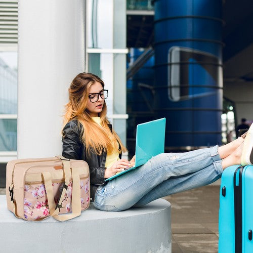 Geanta multifunctionala voiaj, Zola, material impermeabil poliester 600D, 24 l, curea de mana sau de umar, ideala pentru avion, 40x30x20cm, crem cu flori