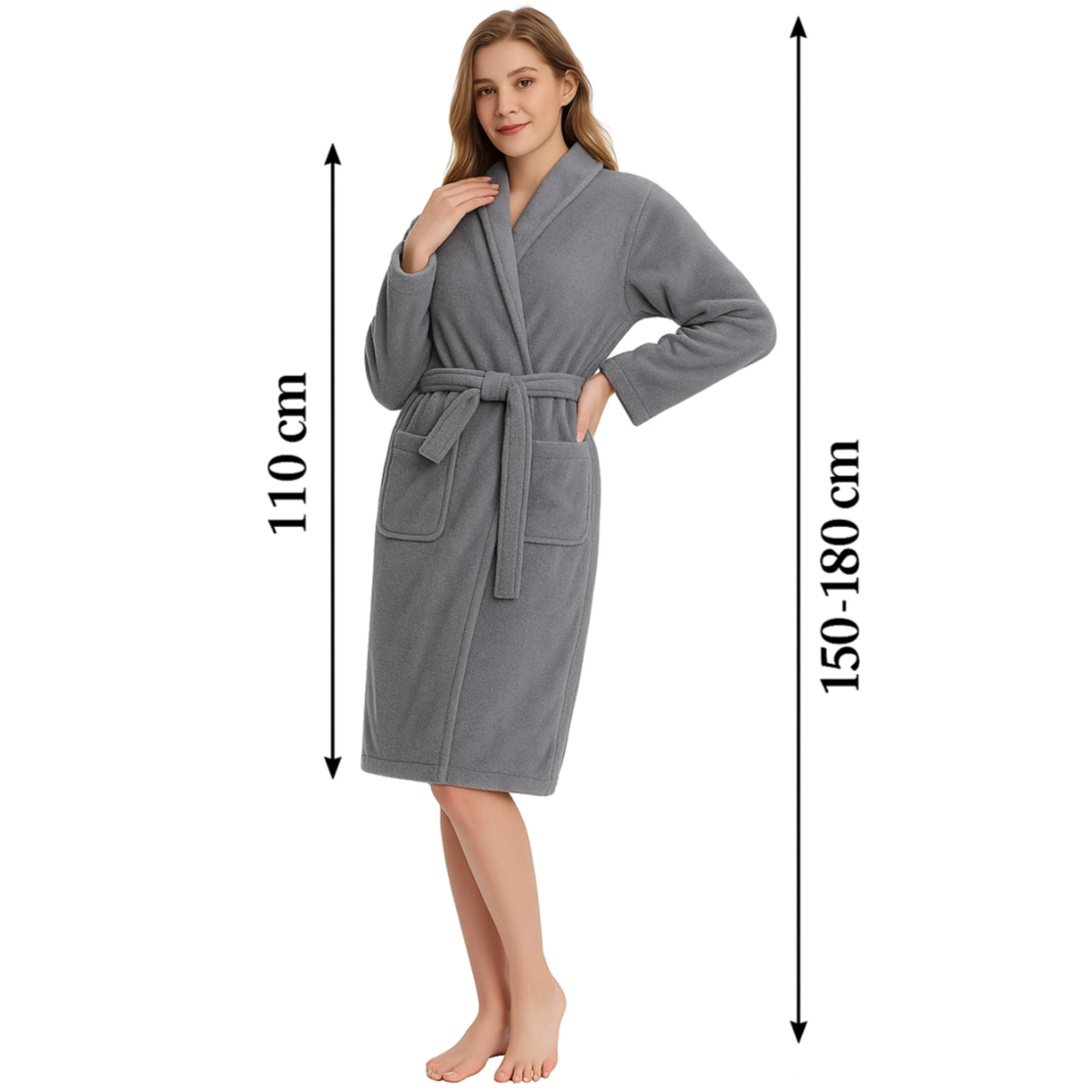 Acest halat de baie dama este alegerea ideala pentru momentele de relaxare de acasa, oferind un echilibru perfect intre confort, caldura si eleganta. Cu o lungime de 110 cm si croiala universala, se potriveste armonios diferitelor tipuri de silueta. Textura moale si placuta la atingere transforma fiecare dimineata sau seara intr-o experienta asemanatoare unui SPA de hotel.