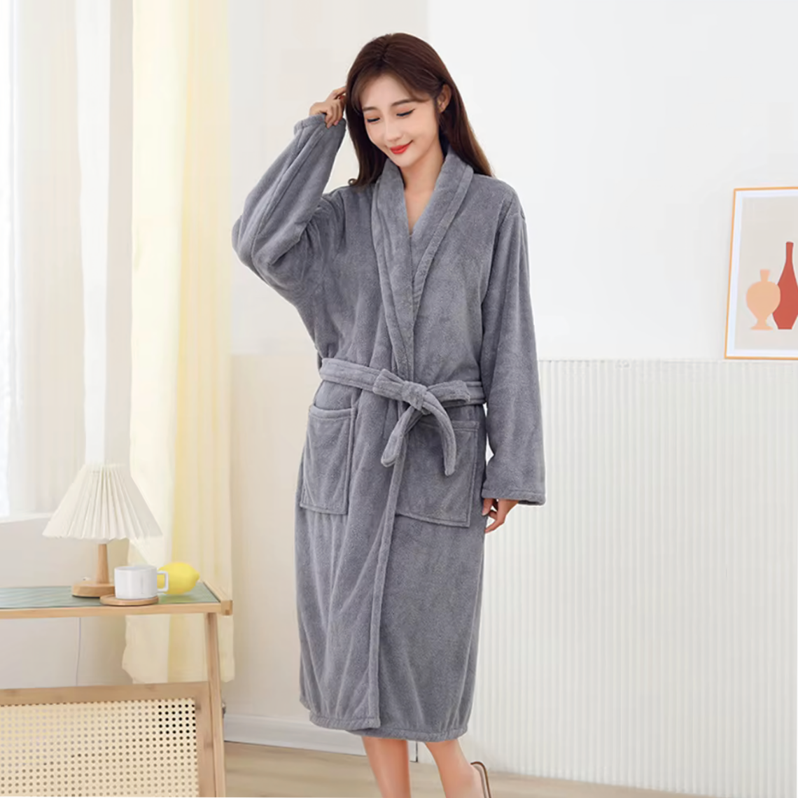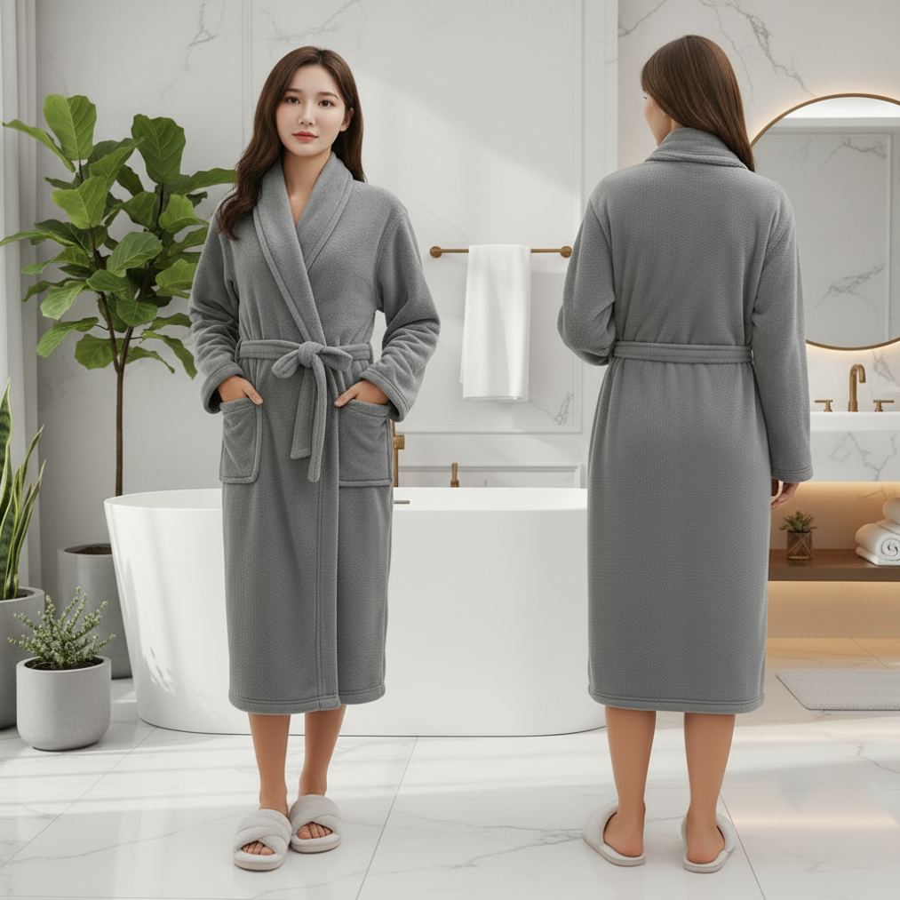 Acest halat baie dama gri este ideal pentru utilizare zilnica, fie ca il porti dupa dus, in timpul cafelei de dimineata sau in serile racoroase. Este o alegere inspirata si ca cadou elegant pentru femei, datorita stilului simplu si rafinat.