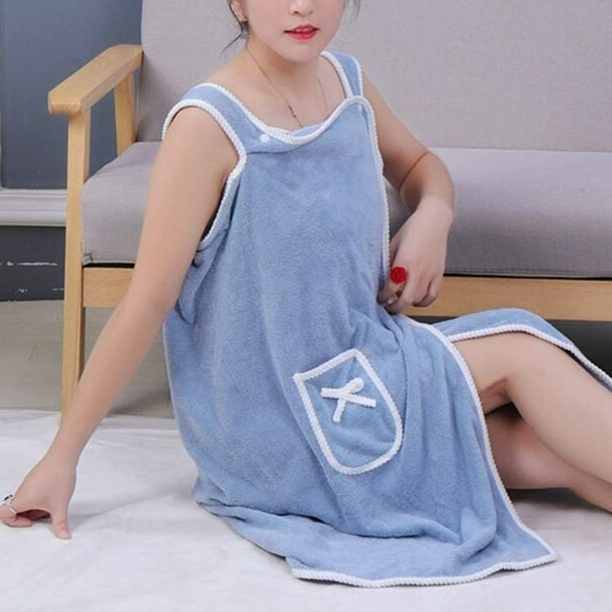 Halat de baie stil prosop 2 in 1, Zola, prindere prin capse, poliester, pufos, uscare rapida, 80 x 135 cm, bleu
