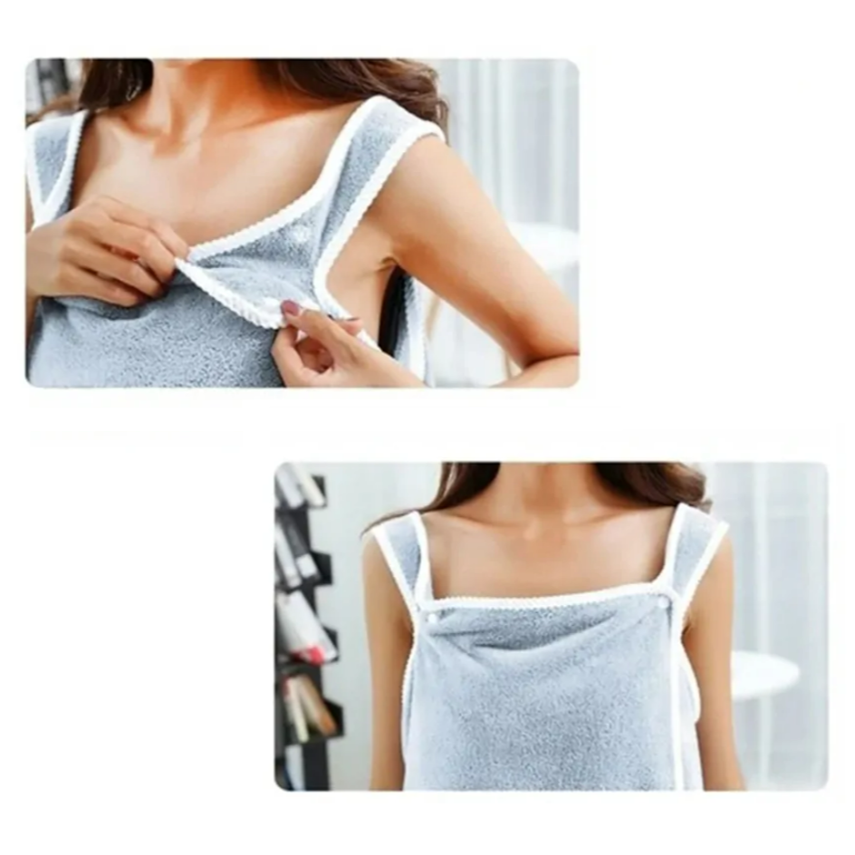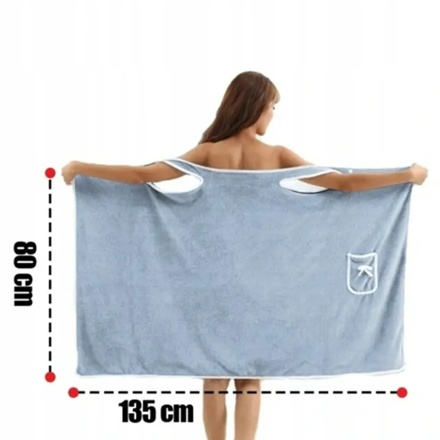 Designul 2 in 1 permite utilizarea produsului atat ca prosop clasic de baie, cat si ca halat cu prindere prin capse, oferind libertate de miscare si un plus de discretie. Capsele rezistente sunt amplasate strategic, pentru o fixare sigura si o inchidere confortabila – ideala dupa dus, baie sau sesiuni de spa.