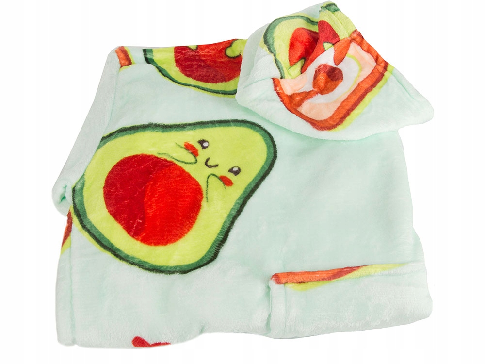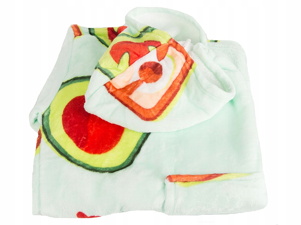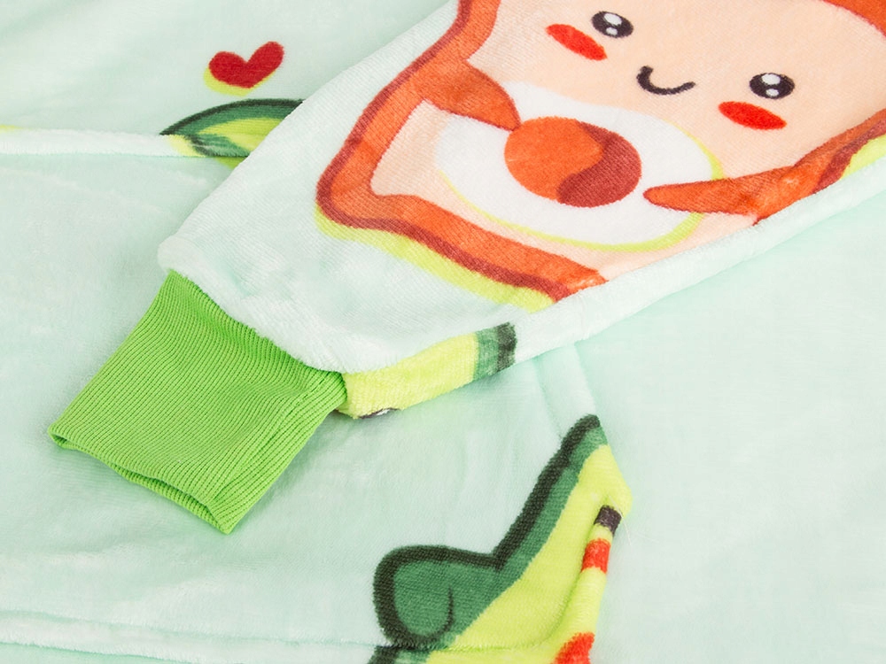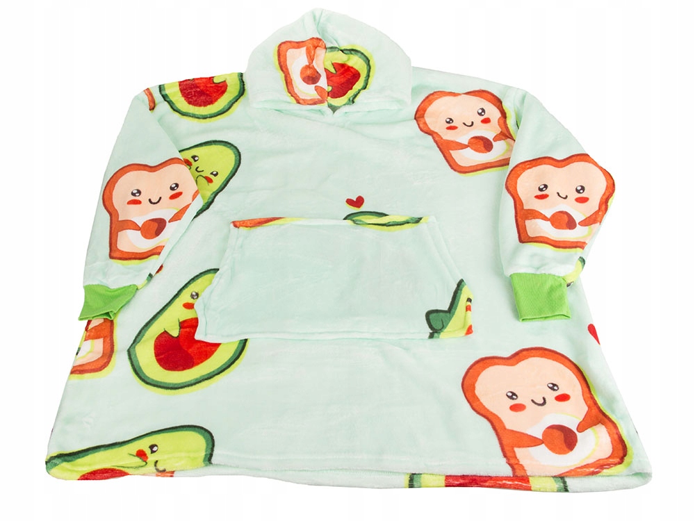 Hanorac patura 2 in 1 cu gluga si buzunar, Zola, avocado si toast, marime universala, pufos, 80x80 cm