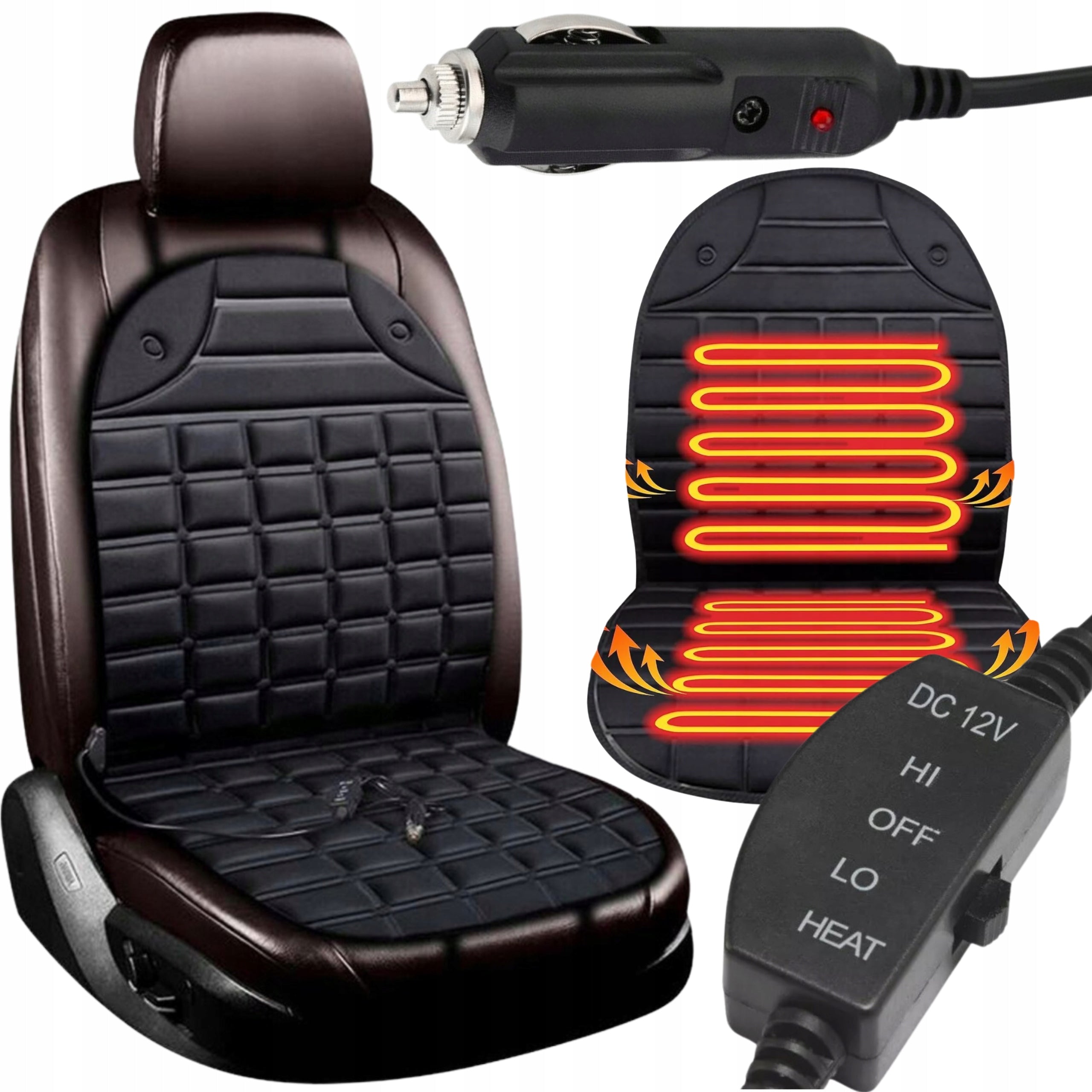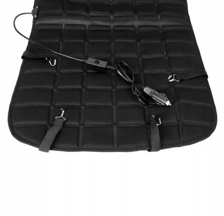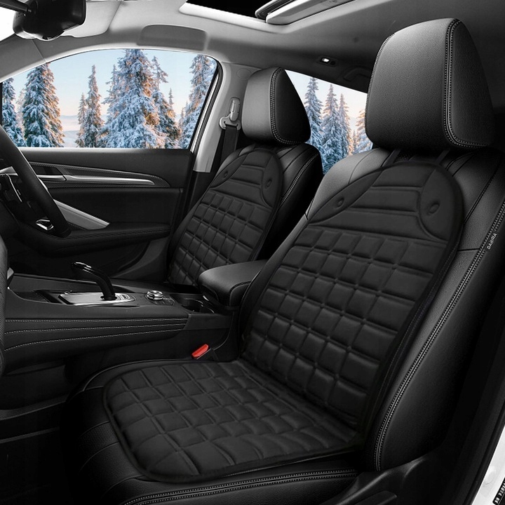 Husa scaun auto cu incalzire, Zola, 48W, 12V, spuma moale, poliester, alimentare priza bricheta,100x48 cm, neagra