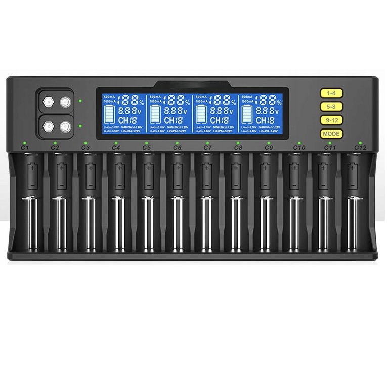 Unul dintre cele mai importante avantaje ale acestui incarcator este capacitatea de a lucra cu mai multe chimii de baterii, inclusiv Li-ion, Ni-MH si NiCd, ceea ce il transforma intr-un echipament versatil si foarte util pentru utilizatorii care folosesc frecvent acumulatori de dimensiuni si tipuri diferite. In plus, cele 12 canale de incarcare permit alimentarea simultana a mai multor baterii, economisind timp si spatiu.