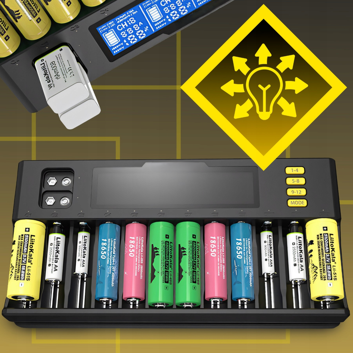 - compatibil cu baterii AA, AAA, 9V si multiple formate Li-ion