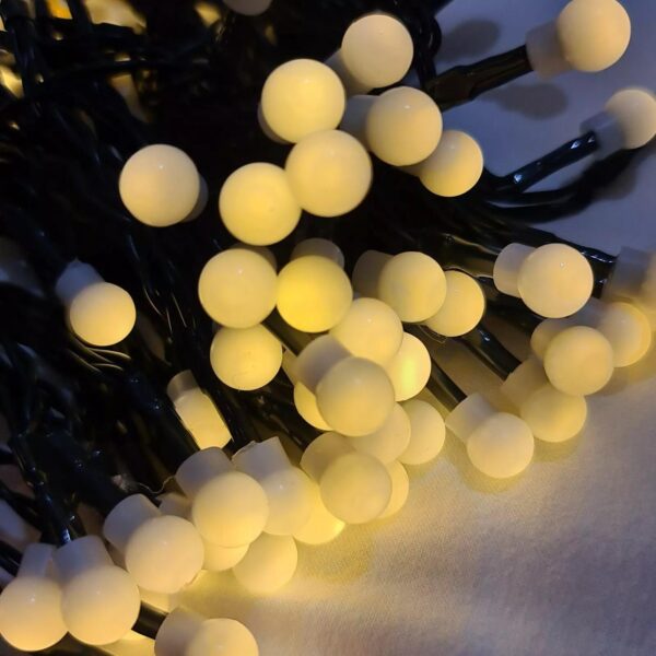 Designul cu globuri luminoase adauga un plus de eleganta si rafinament, iar lumina alba calda ofera acel efect de Craciun traditional, placut ochiului si ideal pentru orice decor.