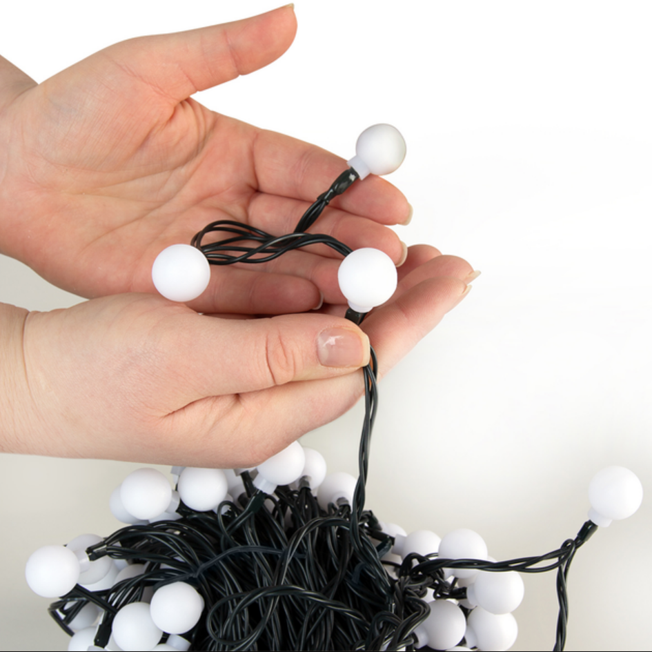 Fiind realizata cu protectie IP44, instalatia este rezistenta la umiditate si zapada, ceea ce o face sigura si potrivita pentru utilizare in exterior. Materialele durabile si cablul de alimentare flexibil iti permit sa o montezi cu usurinta pe balustrade, ferestre, garduri, copaci sau bradul de Craciun.