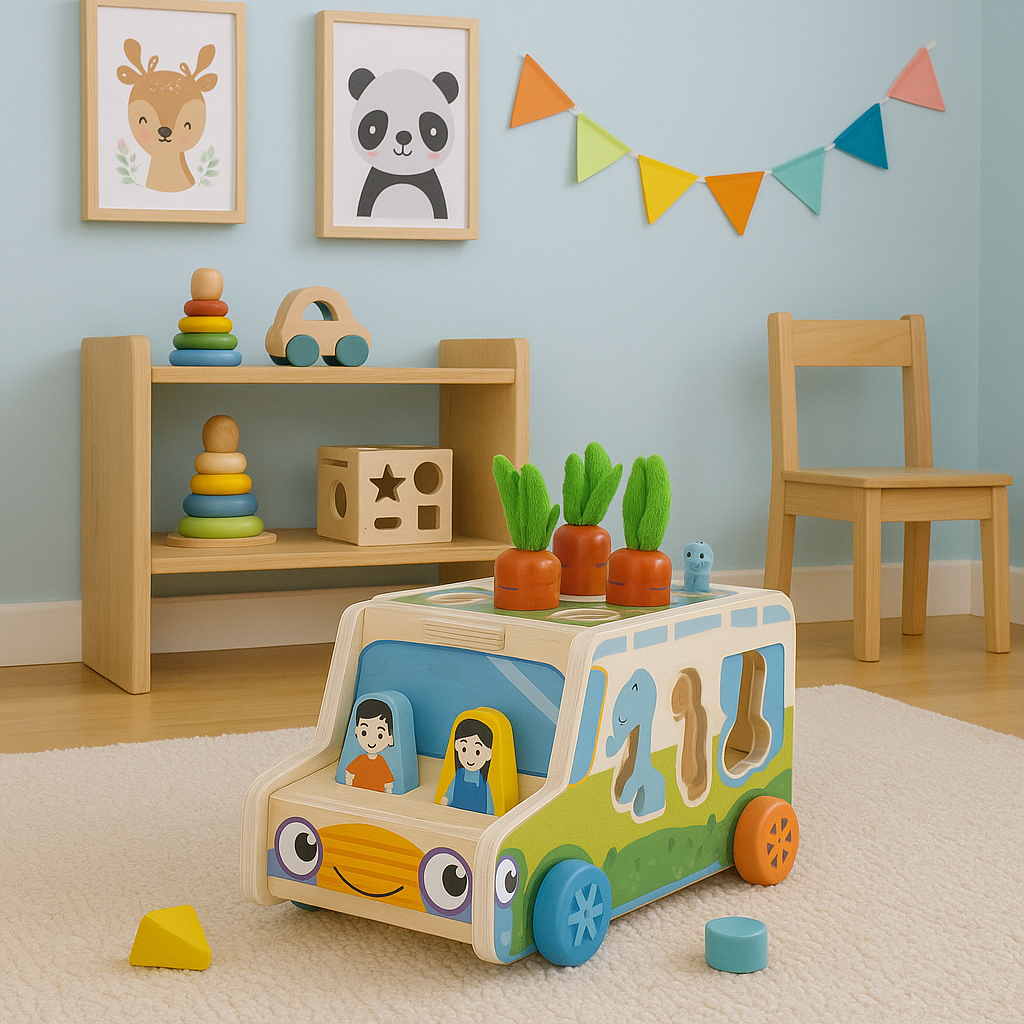Descopera o jucarie complexa, educativa si plina de culoare, care transforma invatarea intr-o experienta distractiva si captivanta! Autobuzul interactiv din lemn Zola este conceput pentru a sustine dezvoltarea armonioasa a copilului, stimulandu-i creativitatea, gandirea logica si coordonarea mana-ochi. Realizat din lemn natural, atent finisat, cu margini netede si culori vii, acest sortator este perfect pentru joaca zilnica, acasa sau la gradinita.
