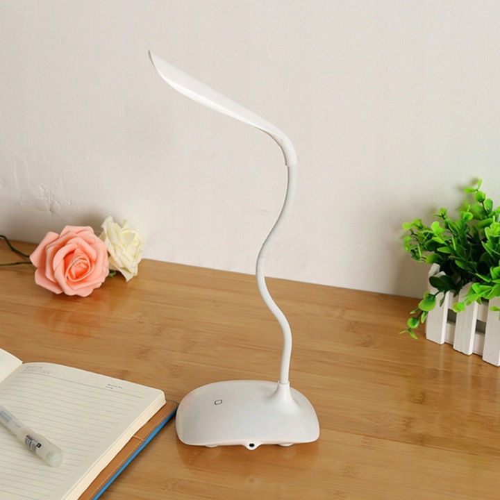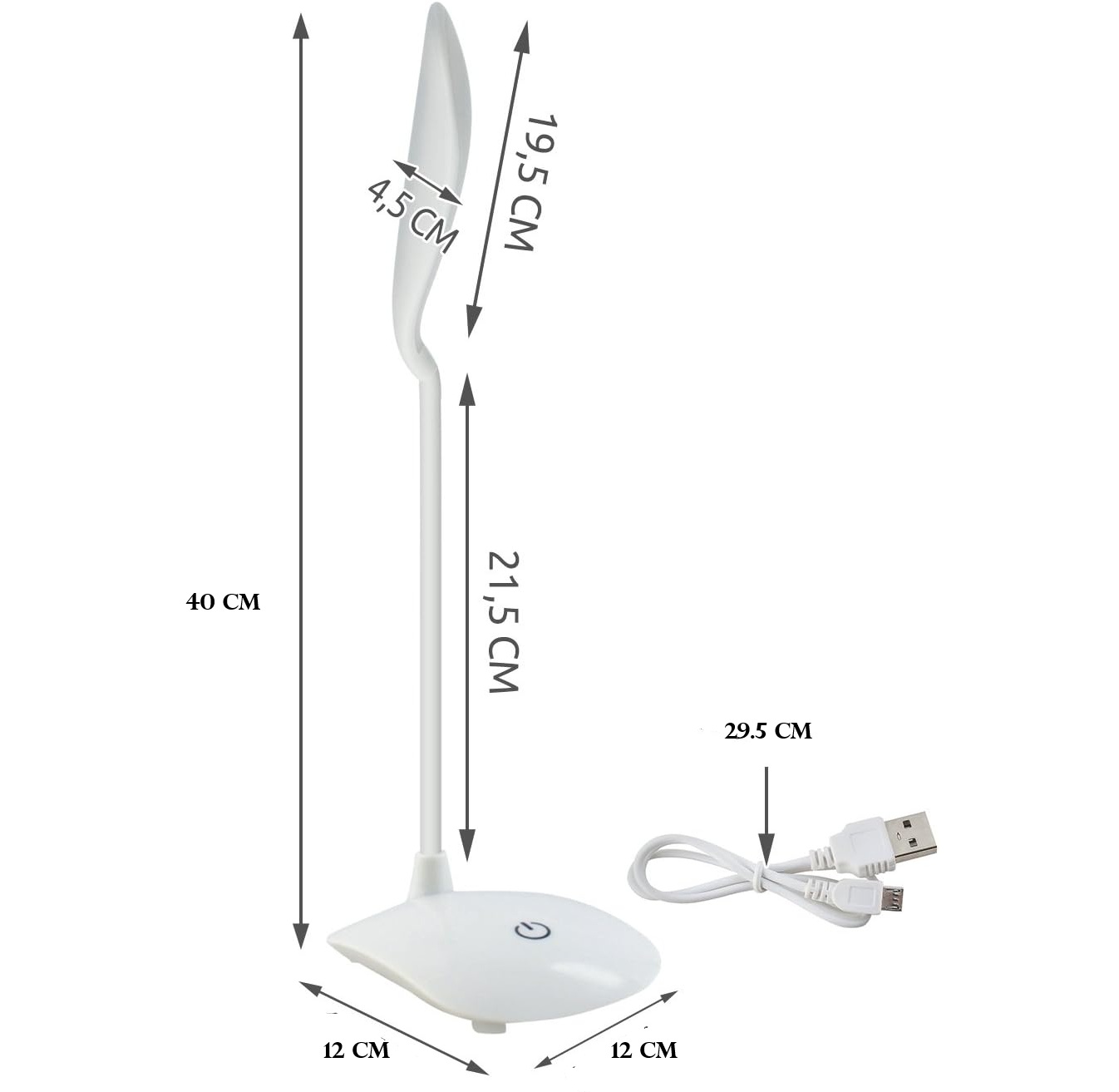 Lampa LED de birou, Zola, cu panou tactil, 14 LED-uri, 3 niveluri luminozitate, 600 lux, alb rece, plastic PP, cablu USB, 10x12x40 cm, alba