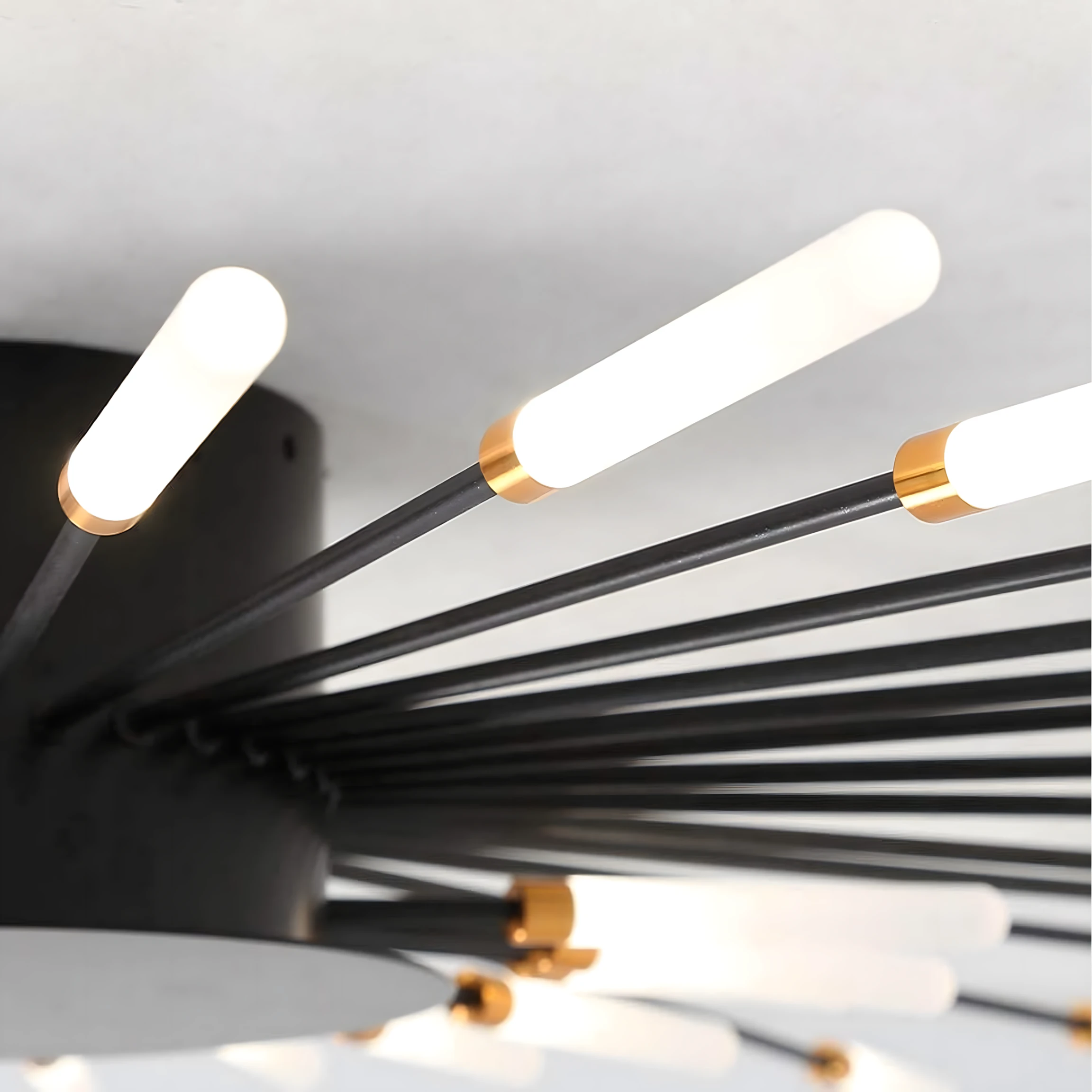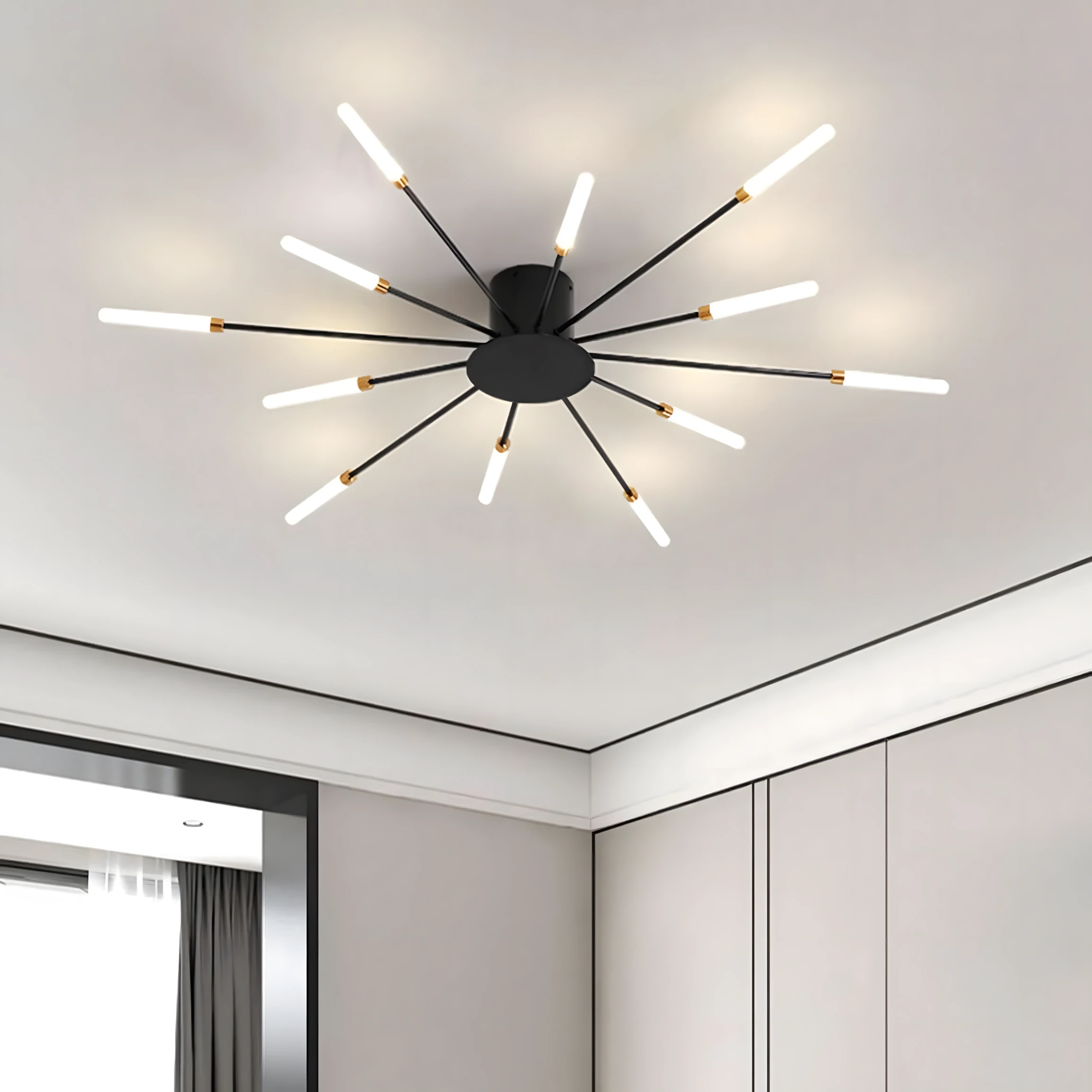 Descopera lustra LED moderna cu 12 brate metalice, un element de design rafinat care transforma orice incapere intr-un spatiu elegant si contemporan. Aceasta piesa de iluminat nu este doar o sursa de lumina, ci o adevarata decoratiune centrala, creand o atmosfera spectaculoasa inspirata de forma spectaculoasa a artificiilor. Cu un design sofisticat in nuante de negru mat si accente aurii, lustra atrage privirile si confera rafinament oricarei incaperi. Este alegerea ideala pentru cei care apreciaza combinatia dintre functionalitate, eficienta si estetica moderna.