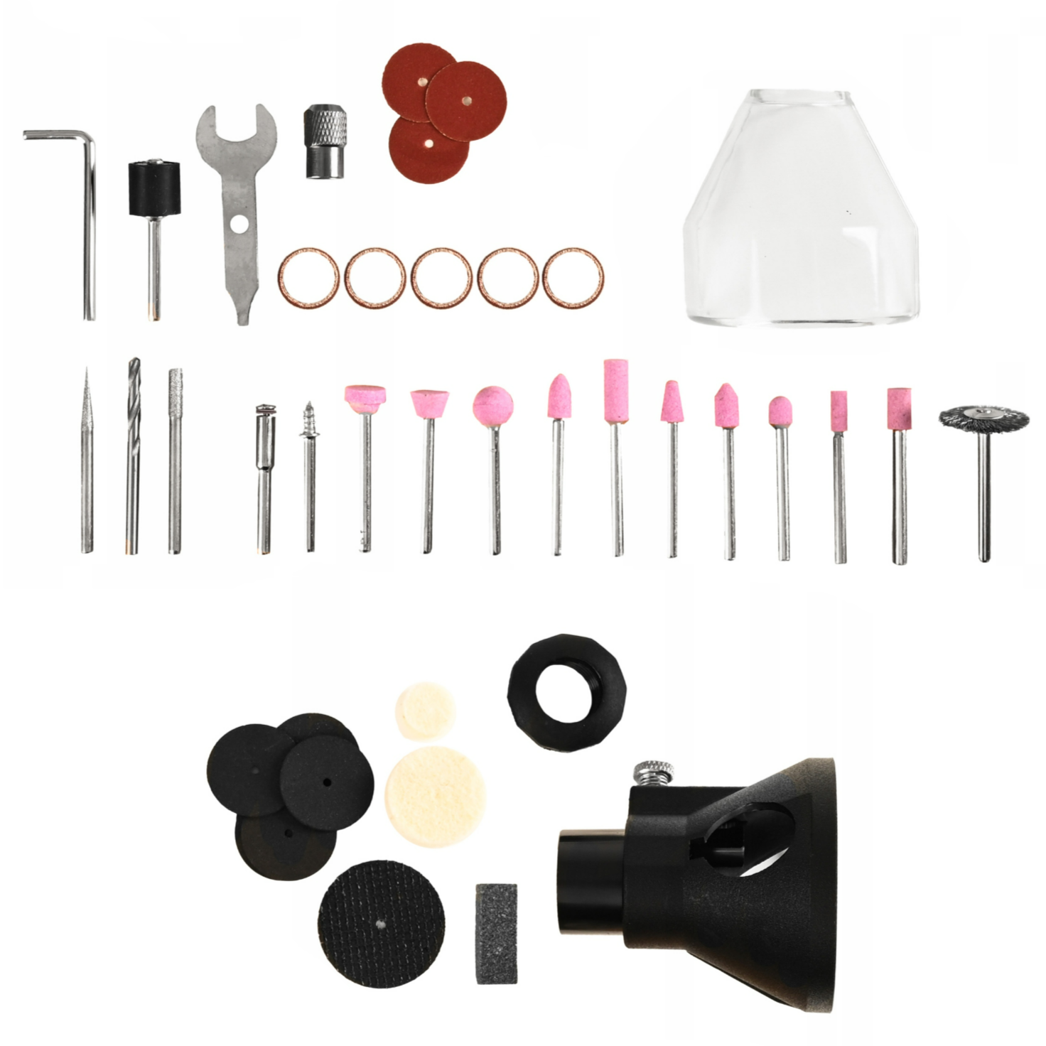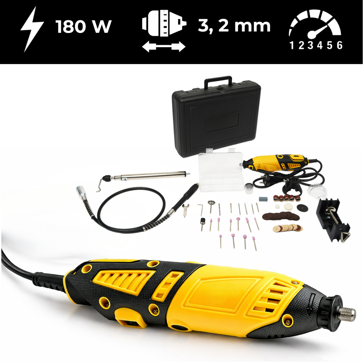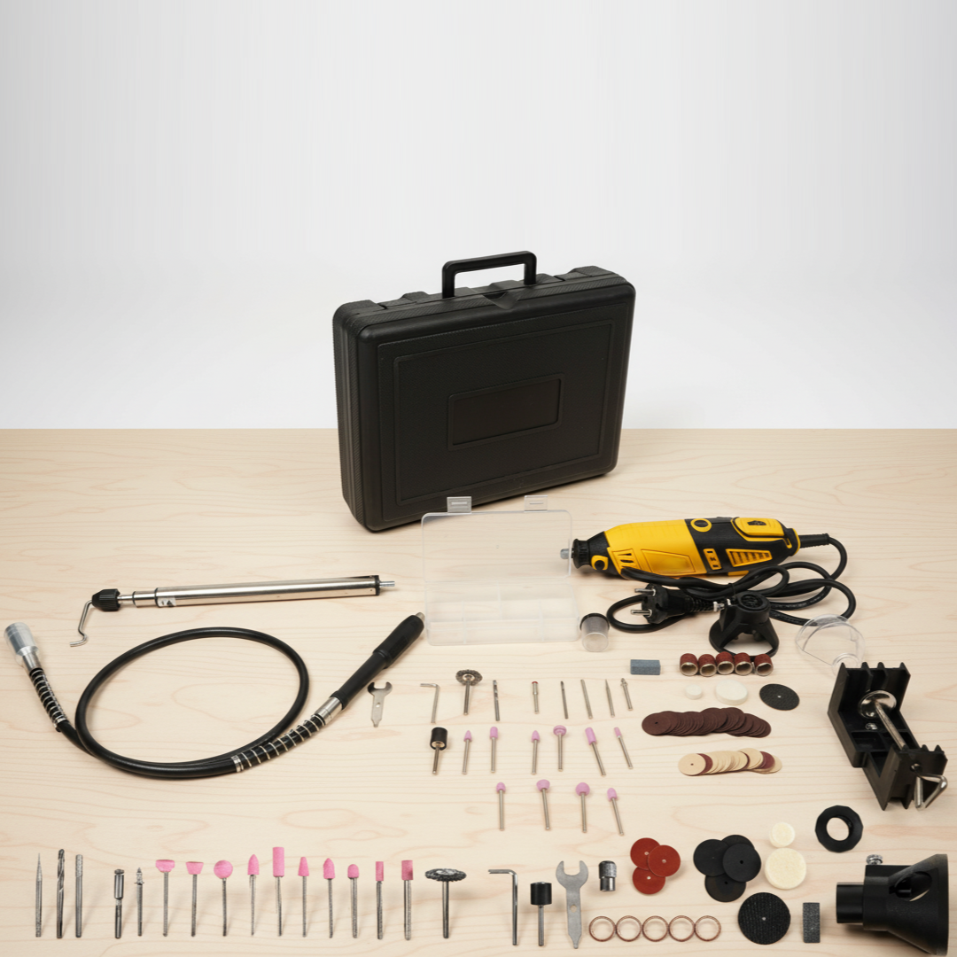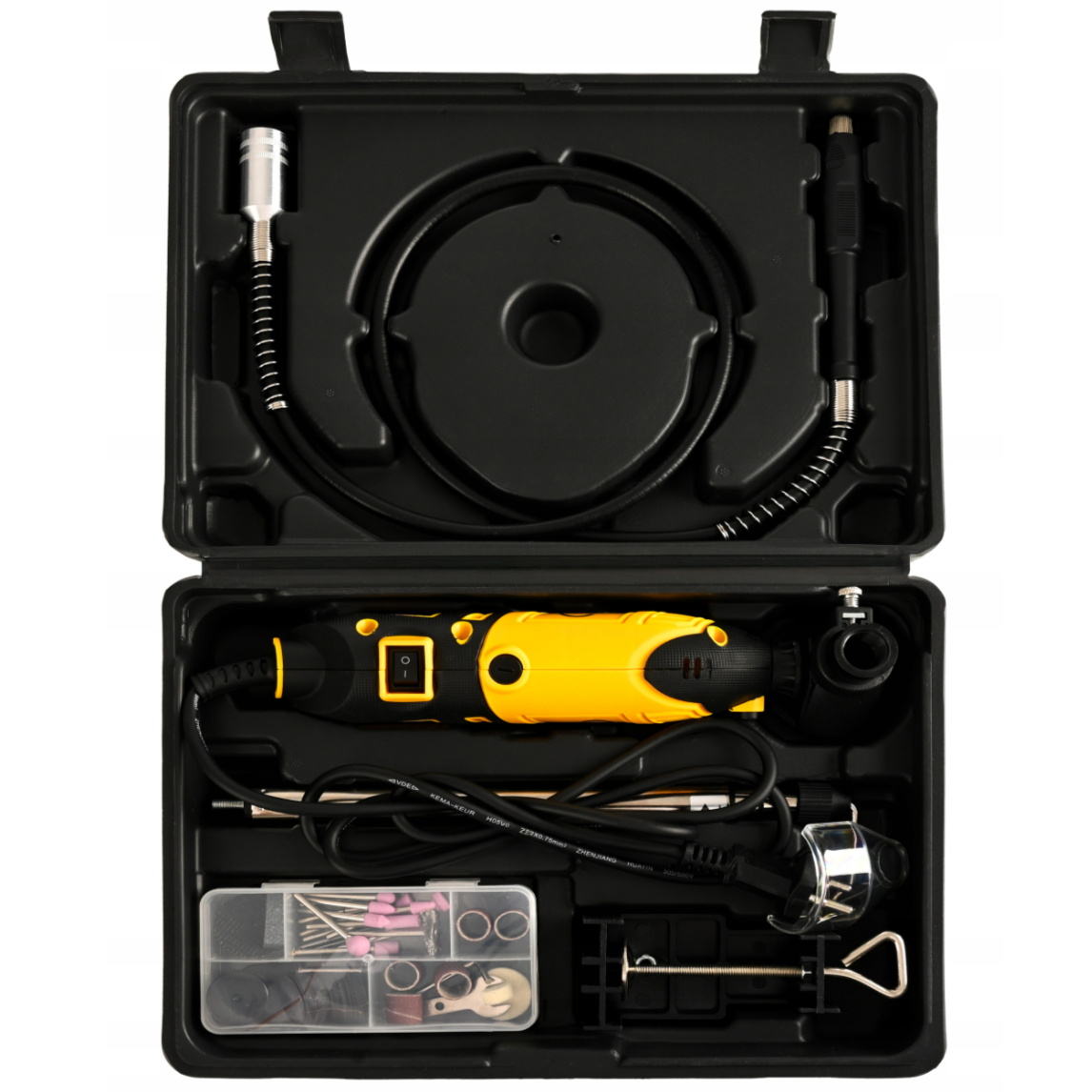 Acest mini polizor multifunctional cu 99 accesorii este alegerea potrivita pentru cei care cauta un aparat de gravare si slefuire precis, compact si puternic, ideal pentru proiecte de modelism, taiere metal subtire, slefuire lemn sau gravare personalizata.