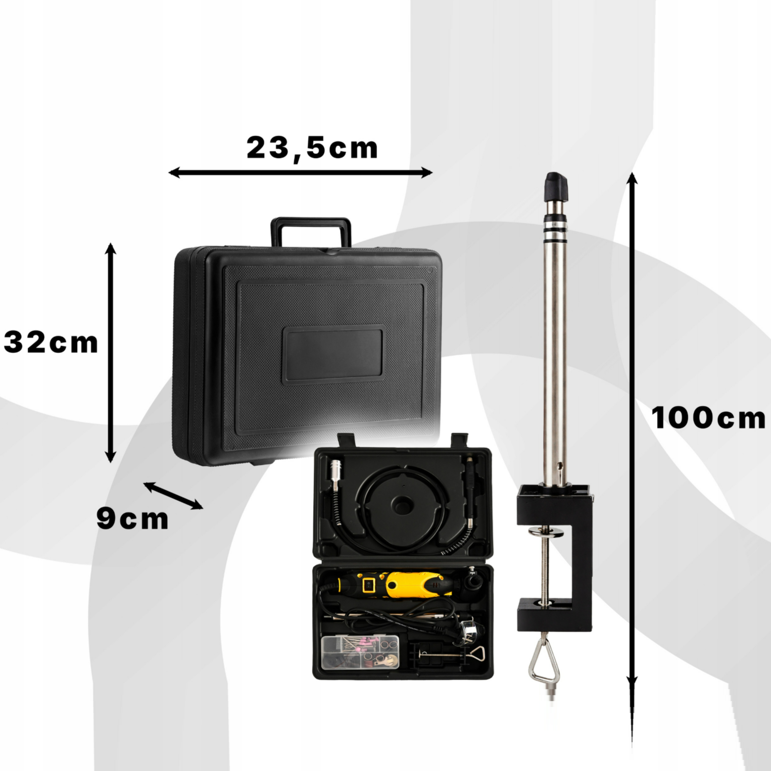 • Extensie flexibila de 1 metru – permite lucru detaliat in zone greu accesibile si ofera precizie sporita la gravare