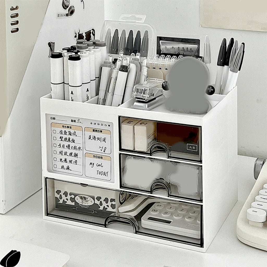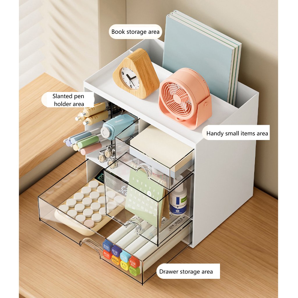 Designul bine structurat, cu sertare incapatoare si compartimente deschise, face ca acest organizator sa fie ideal atat pentru papetarie, cat si pentru cosmetice sau accesorii mici. Este o solutie inteligenta pentru birouri de acasa, camere de adolescenti, laboratoare creative sau pentru zona de machiaj, contribuind la o atmosfera ordonata si placuta vizual. Fiind compact si stabil, se potriveste chiar si pe spatii mici, mentinand totul aranjat si accesibil.