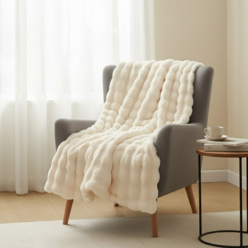 Patura pufoasa din blana artificiala si plus este accesoriul ideal atunci cand ai nevoie de confort instant si o atmosfera calda in locuinta. Cu o textura incredibil de fina si o culoare alba eleganta, aceasta patura transforma orice spatiu intr-un loc primitor, fie ca o folosesti in dormitor, living, pe fotoliu sau ca element decorativ. Realizata din poliester de calitate, este durabila, usoara, se mentine pufoasa in timp si ofera senzatia aceea placuta de relaxare profunda.