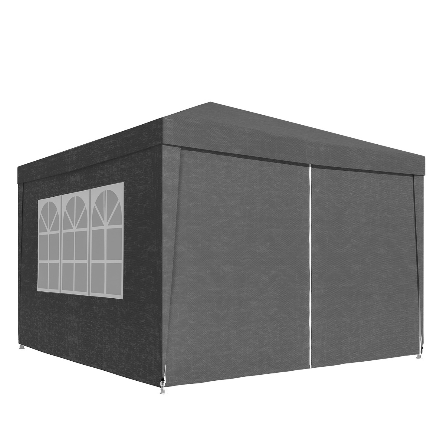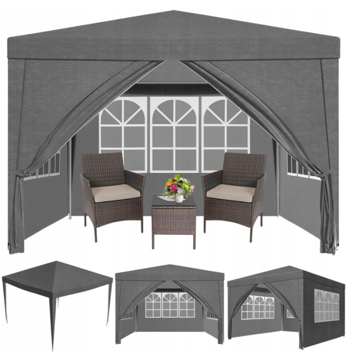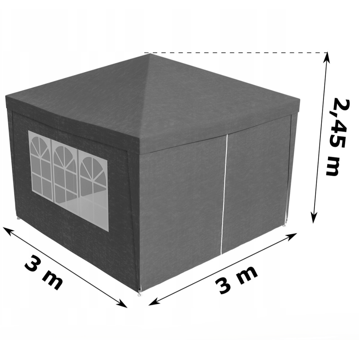 Pavilion gradina cu pereti detasabili, Zola, 3 x 3 x 2.45 m, 3 ferestre, usa cu fermoar, prindere velcro, cadru otel, polietilena 100 g/m², gri