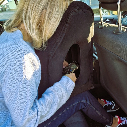 Un alt avantaj esential este prezenta unui decupaj frontal pentru fata si a doua orificii pentru maini, care ofera suport optim pentru cap si permit folosirea confortabila a telefonului mobil sau a altor dispozitive. Aceste detalii cresc semnificativ gradul de confort si ajuta la combaterea plictiselii in timpul calatoriilor.