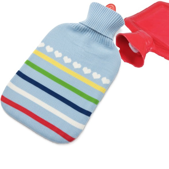 Perna pentru apa calda, Zola, capacitate 2l, model inimi si dungi, din cauciuc, albastru