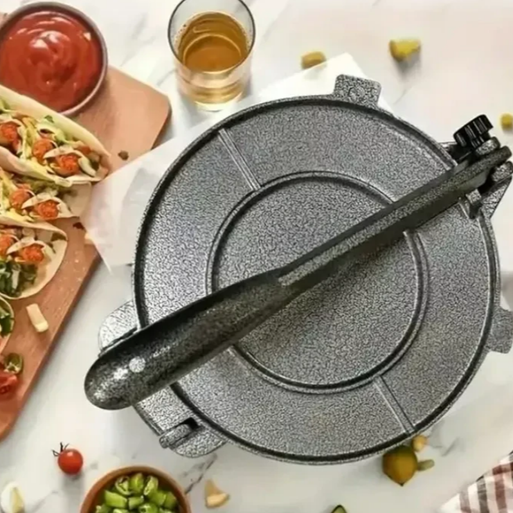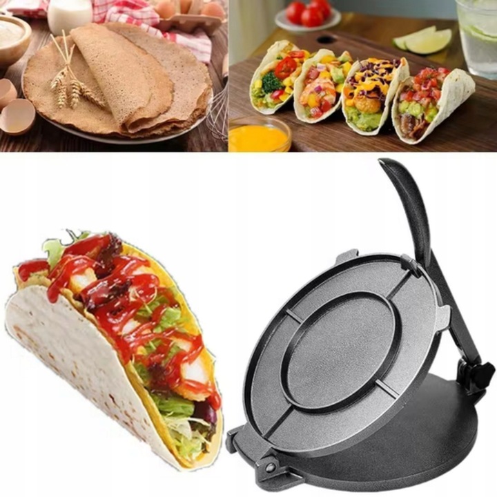 Presa pentru tortilla este un accesoriu indispensabil in orice bucatarie, fie ca gatesti pentru familie sau pentru prieteni. Designul compact si robust o face potrivita atat pentru utilizarea zilnica, cat si pentru depozitare usoara, fara a ocupa mult spatiu.