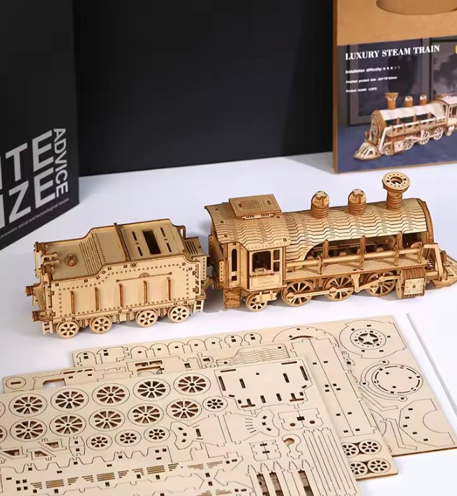 Cu 282 de piese din lemn care se imbina perfect fara a fi nevoie de lipici, puzzle-ul antreneaza rabdarea, concentrarea si precizia, transformandu-se intr-o experienta interactiva si educativa. Pe masura ce piesele se imbina pas cu pas, vei observa cum din mainile tale ia forma o locomotiva clasica cu tender, o reproducere detaliata si eleganta care impresioneaza prin aspectul sau realist. Procesul de asamblare reprezinta o activitate ideala pentru adolescenti si adulti, incurajand gandirea logica si coordonarea mana-ochi, dar si relaxarea activa dupa o zi solicitanta.