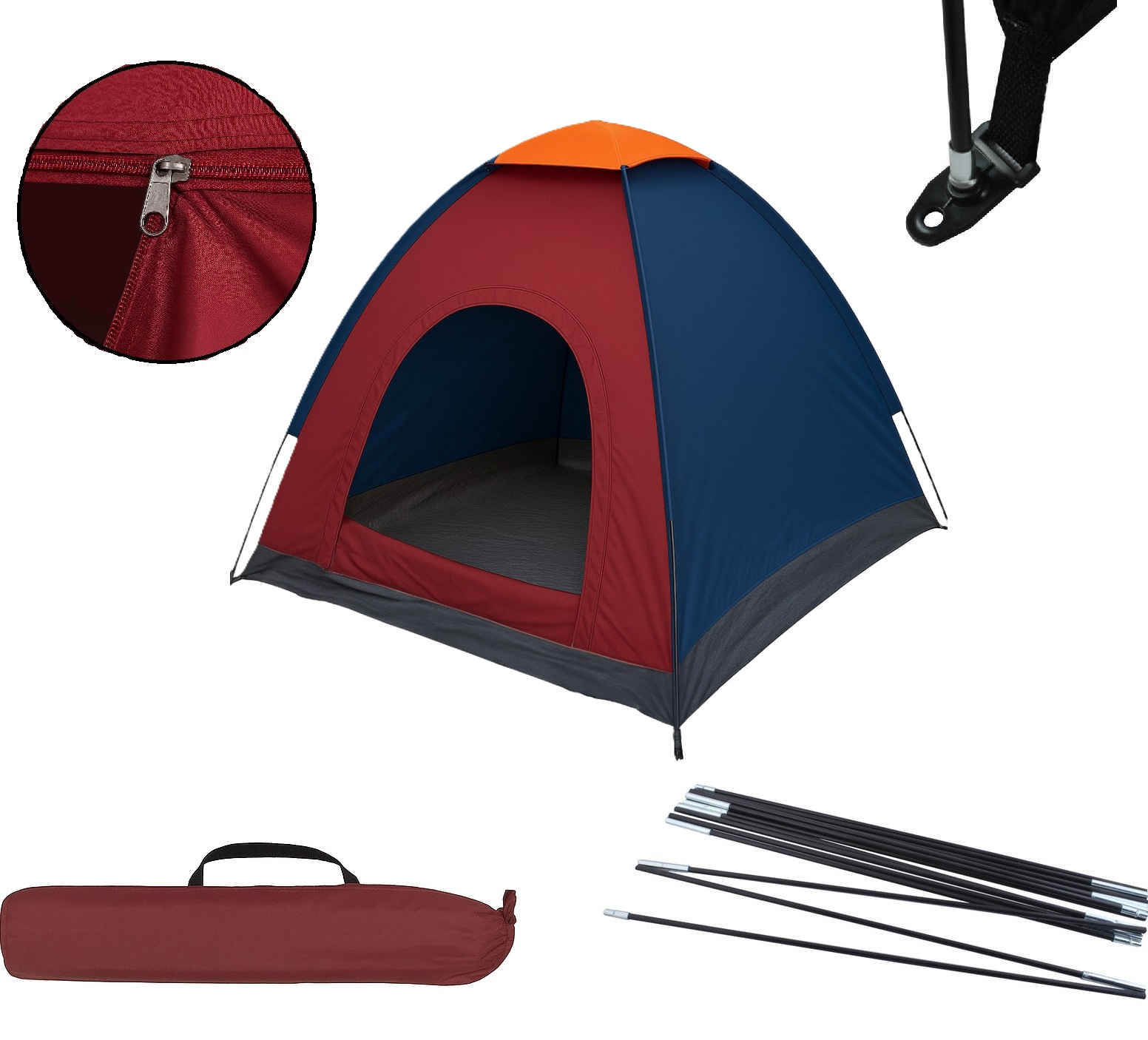 Cort camping 2 persoane, Zola®, plasa pentru insecte, impermeabil, husa, 180 x 180 x 135 cm, albastru/visiniu