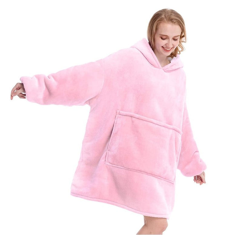 RESIGILAT-Hanorac patura cu gluga si maneci, Zola®, calduros si pufos, buzunar spatios, roz