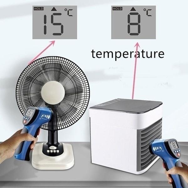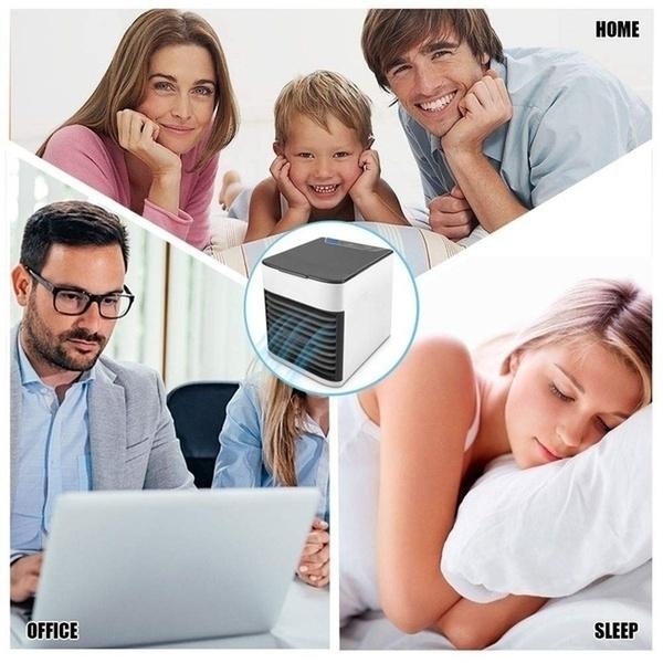 Acest produs este un mini-aparatul de aer conditionat care este un dispozitiv perfect in zilele caniculare de acasa sau la serviciu. Acest dispozitiv mic este capabil sa reduca semnificativ temperatura din camera. Datorita dimensiunilor reduse, pot fi asezate pe un birou, dulap sau masa. Aparatul de aer conditionat este echipat cu o lumina de fundal care straluceste in culori schimbatoare.