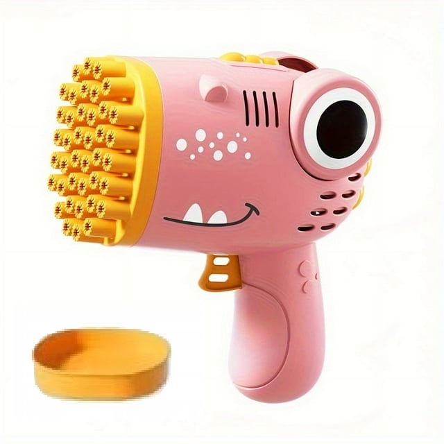 Pistolul de facut baloane de sapun cu design de dinozaur este jucaria ideala pentru a transforma orice moment intr-o experienta magica si distractiva. Cu un aspect atragator si functionalitati automatizate, acest pistol de bule creeaza o atmosfera plina de entuziasm si rasete, fiind perfect atat pentru joaca in aer liber, cat si pentru petreceri sau zile speciale. Este usor de utilizat, portabil si captivant, oferind o ploaie spectaculoasa de baloane care va incanta orice copil.