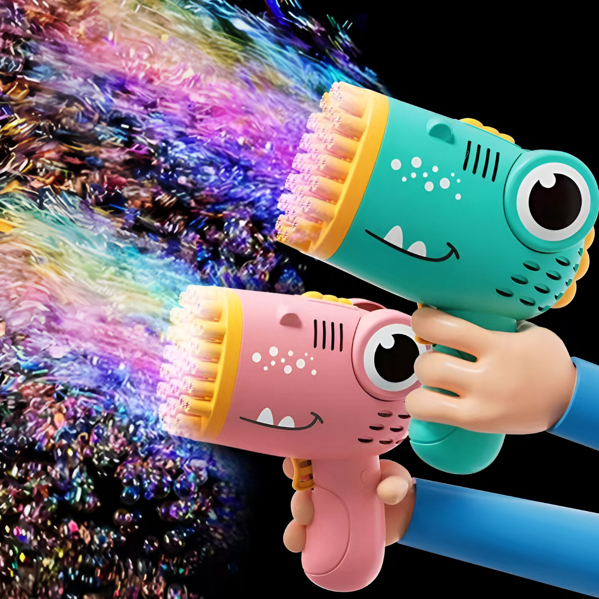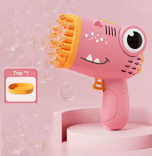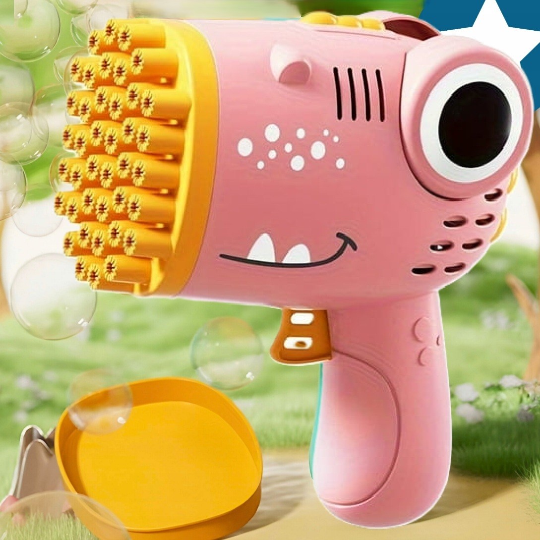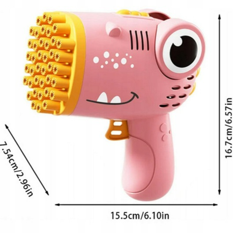 Acest pistol cu baloane se remarca prin designul adorabil in forma de dinozaur, care atrage instant atentia celor mici si le stimuleaza curiozitatea si imaginatia. Este o jucarie complet automata, care functioneaza printr-o simpla apasare de buton, oferind o experienta continua si fara efort pentru copil.